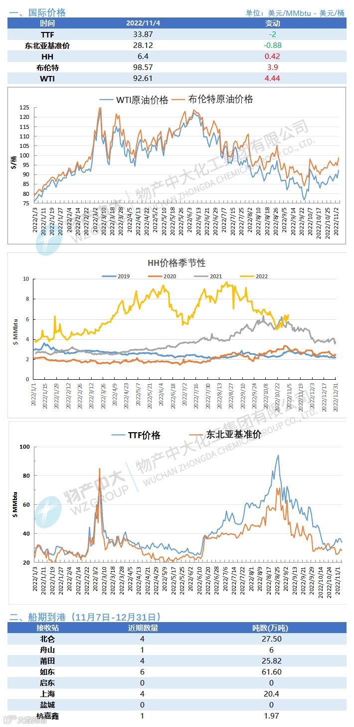 免责申明:本报告信息来源于第三方公开数据,由物产中大化工集团有限公司汇总整理,并授权浙江国际油气交易中心有限公司发布。未经事先书面许可,任何机构和个人不得进行转载、复制和引用。尽管我们相信报告中信息来源的可靠性,但对这些信息的准确性和完整性不作任何保证,也不保证所含信息不会发生任何变更。本报告中所有内容仅供参考,不构成任何投资建议或投资决策依据,投资者需自行独立判断并承担风险,浙油中心不对因直接或间接使用本报告而造成的损失承担任何法律责任。