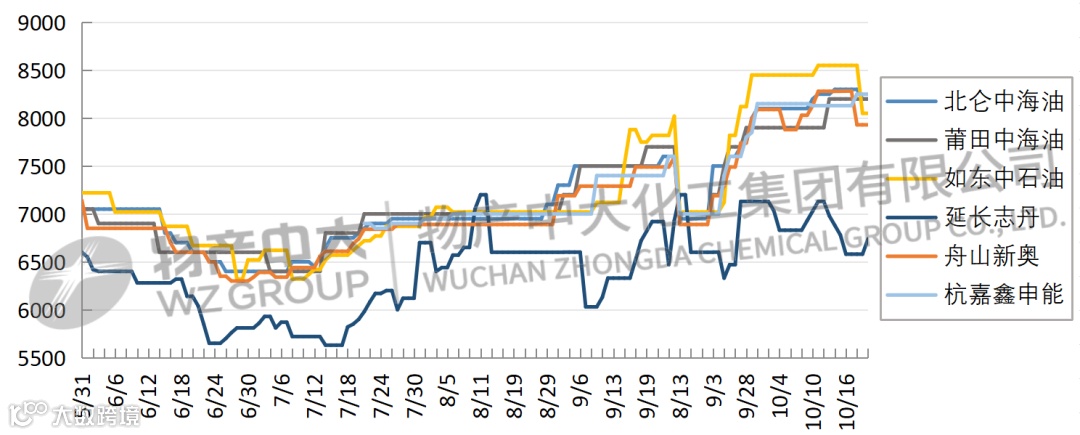 今日华东价格维持企稳,区内需求维持弱势,市场局部地区液厂降产,总体成交较弱。目前国产气流入较大,与海气形成套利区间。