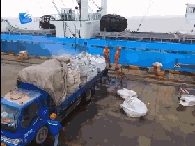 这艘巴拿马籍的金枪鱼运输船已在舟山港综保区码头连续卸载作业六天,为给下一艘船舶留出足够的靠泊时间,码头正以每小时23吨的速度进行卸载,预计今晚10点可卸载完毕。