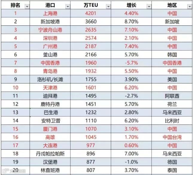 近期,业界权威分析机构Alphaliner发布了2018年度全球港口集装箱吞吐量120强榜单。