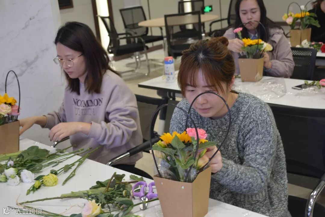 活动当天,公司全体女员工齐聚课堂。花艺培训老师通过对花艺理论知识及送花礼仪的讲解,拉开本次花艺培训的序幕。理论课后,进入本次活动的高潮环节——现场插花。在花艺培训老师的指导下,学员们讲究色彩搭配,合理布局,错落有致,交出了一幅幅独具匠心的花艺作品。培训老师对花艺作品进行一一点评,学员们各有所获,活动圆满地落下了帷幕。