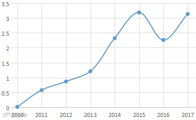 从指数来看,人民币国际化近年来取得了明显进步,到2017年末人民币国际化指数为3.13(趋势见图二),但仍落后于其他主要货币(如仅为英镑的1/2、美元的1/24)。人民币国际化之路前途漫漫,还有很长的路要走。