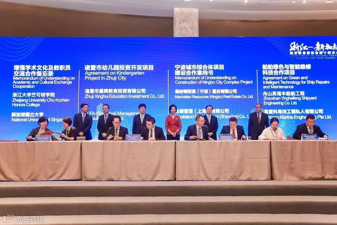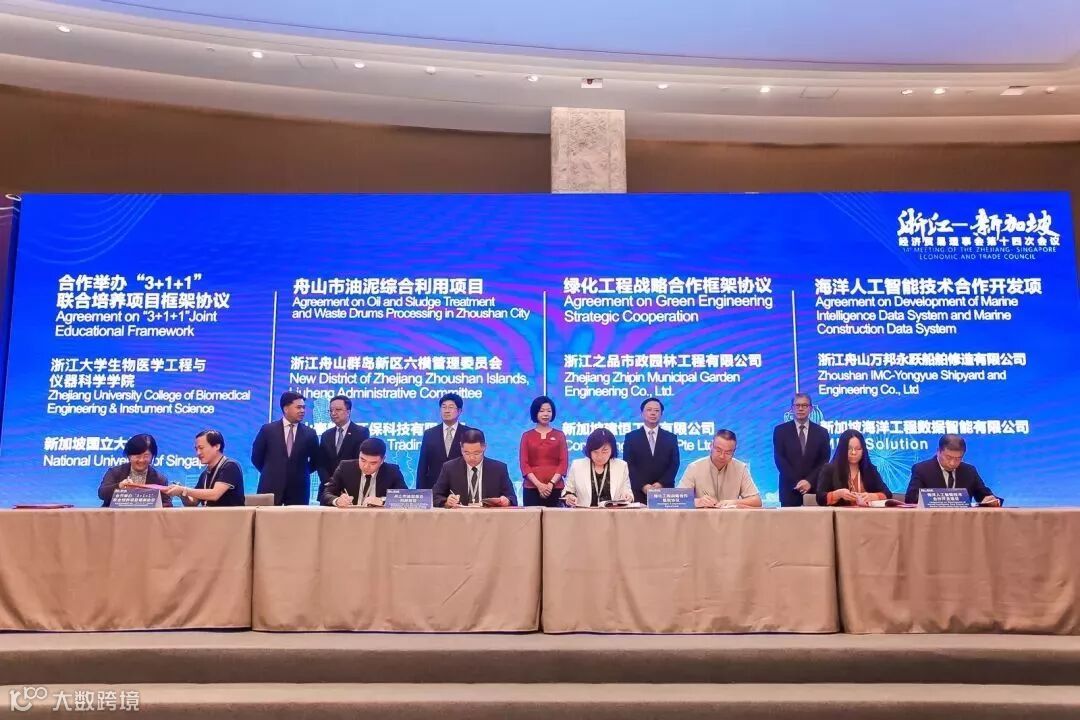 本次会议共签署15个重点项目,协议金额超110亿元,涉及海事服务、城市规划、环保、跨境电商、金融服务、青年交流、国际教育等领域。在会上,浙江自贸试验区签下“舟山市油泥综合利用项目”、“海洋人工智能技术合作开发项目”和“船舶绿色与智能维修科技合作项目”三个项目。