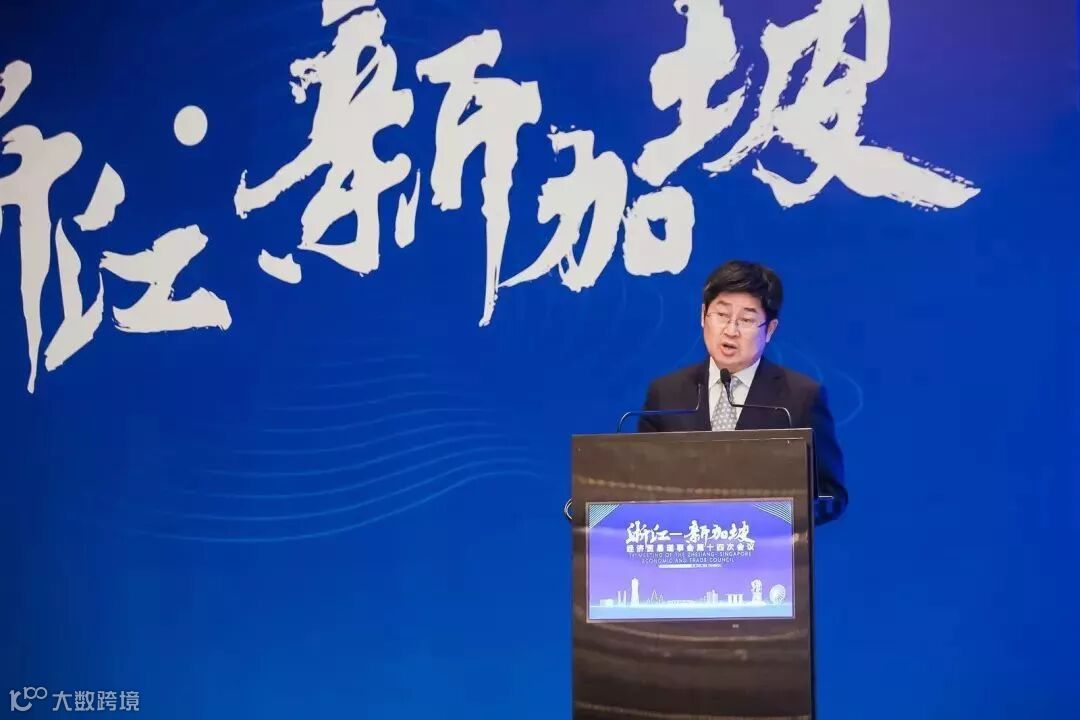 6月25日下午,浙新经贸理事会第十四次会议在杭州召开,理事会浙方主席、浙江省人民政府副省长朱从玖,理事会新方主席、新加坡通讯及新闻部兼文化、社区及青年部高级政务部长沈颖出席并致辞,理事会浙方副主席、浙江省商务厅厅长盛秋平主持会议。双方有关政府部门、企业、机构和高校代表共250余人参会。