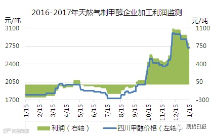 今年高企的甲醇价格,已经令几乎所有甲醇企业都能取得丰厚的利润,据中宇资讯监测,自10月份以来,无论是煤制还是天然气制甲醇企业,其平均利润都在500元/吨以上,2016年12月,其利润更是达到了创纪录的1000元/吨。这是自中宇资讯开始监测企业利润以来的最高值!截止目前,国内大多数煤制甲醇企业的利润仍在600元/吨及以上,天然气制甲醇企业的利润则在800元/吨左右。