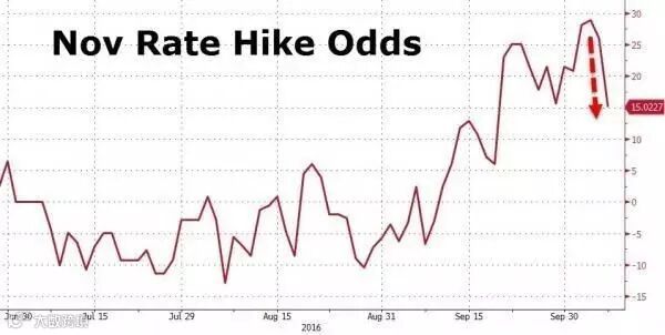 “美联储通讯社”Jon Hilsenrath在非农报告出炉前表示,美联储几乎不可能在11月采取行动,因为11月会议的后一周就是美国总统大选。若今天的劳动力市场表现疲软,将引发美联储的特别注意。若9月失业率大幅下降,则将改变美联储主席耶伦认为经济尚有上行空间的想法,提高美联储在12月的加息概率。