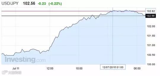 安倍晋三的刺激政策消息一出,日元大跌。美元/日元最高位为102.82,日元日跌幅2.2%,这是近两年内日元的最大日跌幅。