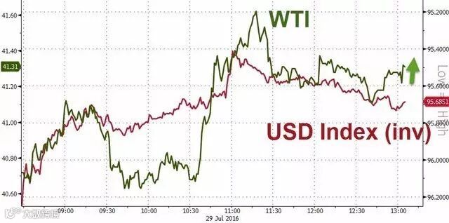 为什么会这样?彭博新闻社此后指出,WTI价格上涨是因为美元汇率跌幅扩大。