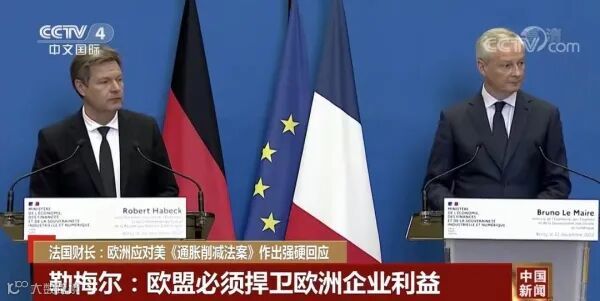 美国总统拜登今年8月签署《通胀削减法案》,引发法国德国等欧盟国家不满。当地时间22日,法国财长勒梅尔在巴黎表示,法德一致同意,欧洲需要对美国政府支持部分美国行业的计划作出强硬回应。