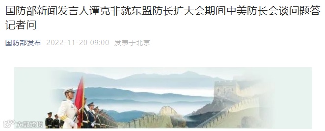 谭克非:中方对东盟防长扩大会期间与美方进行交流持积极、开放态度,双方有关部门正就此保持沟通协调。