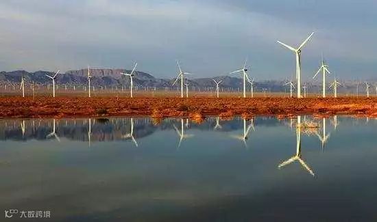 它不是一面紧邻寒冷的青藏高原,一面挨着炎热的戈壁沙漠吗?两个地形之间的温差导致这里有持续不断的大风吹过,因此也就有了——风能!