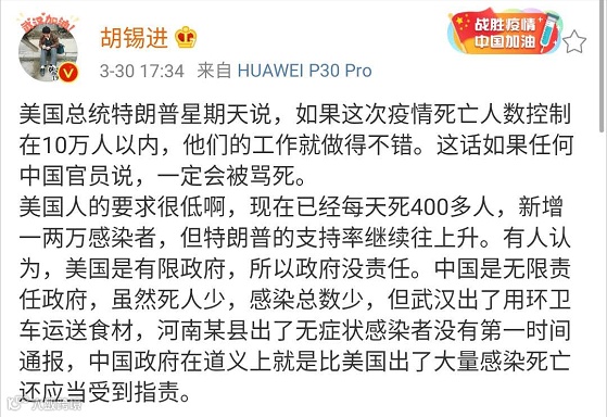 胡锡进微博截图