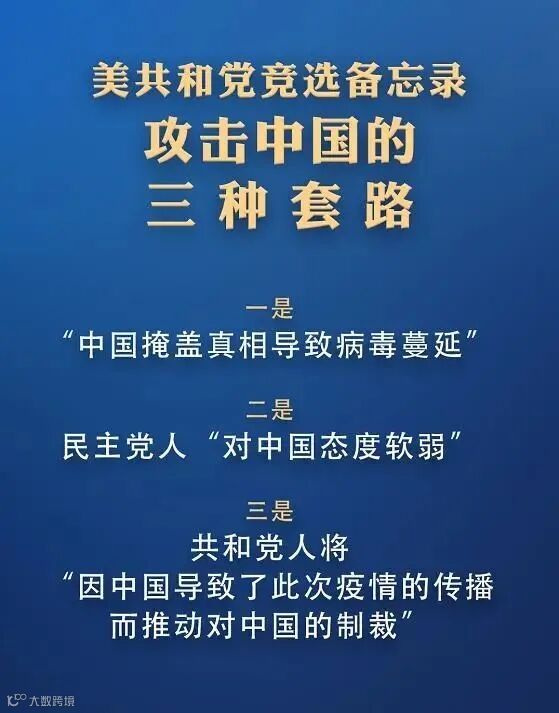 美媒曝出,为了把这招“教授”给更多共和党候选人,该党重要竞选部门专门发去57页长的备忘录,告诉他们在被问到“是不是特朗普的错”、“是否涉种族主义”时,应该怎样通过攻击中国“过关”。