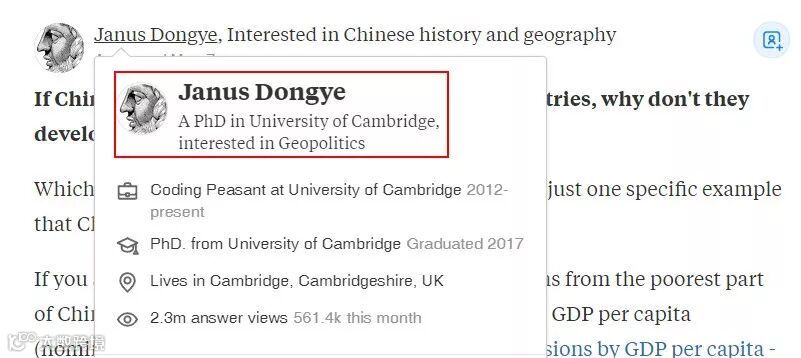 回答这个问题的是剑桥大学的一位博士,名叫Janus Dongye。