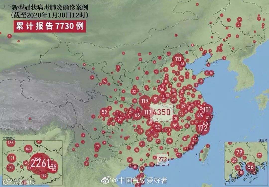 截止30日的统计数据,中国新型冠状病毒确诊病例7730例,感染人数超过非典。