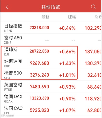 昨晚,美股三大股指全线上涨,纳斯达克指数和标普500指数涨逾1%,日经指数今日上午也涨近0.5%。