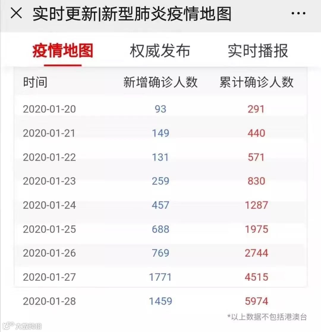 1月27日是1771人,1月28日是1459人,昨天比前天少了200多人。从20号公布到现在,这是第一次出现减少,呈现出下降态势!