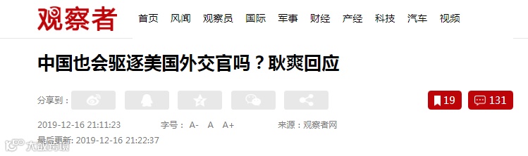 回到本次中美事件来,中国尚未做出报复性行动,这也侧向证明中国外交官的清白。