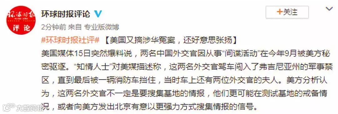 环球时报评论称,“如今美国看中国人谁都像间谍”!