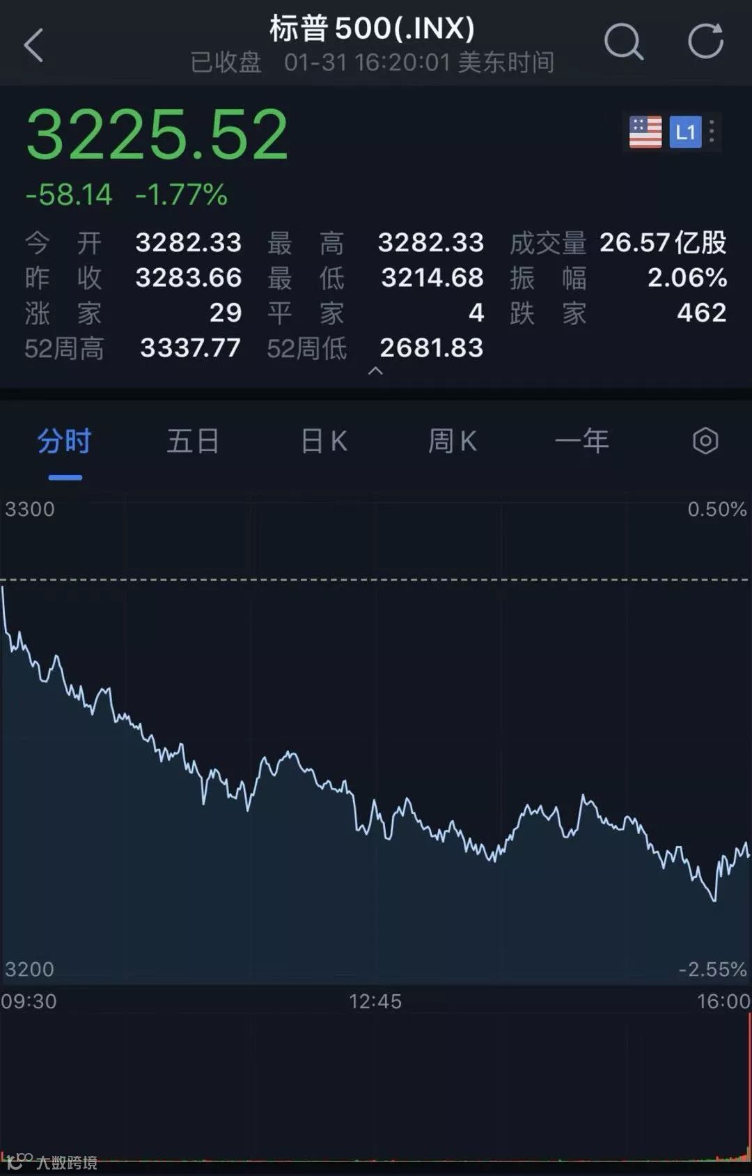 标普500指数跌1.8%,回吐年内涨幅。