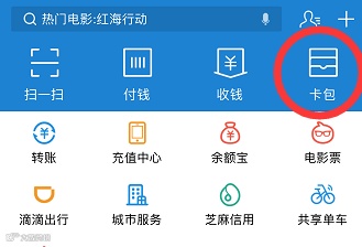 点击右上角“卡包”,