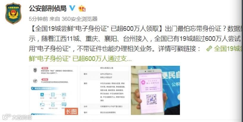 目前,台州、江西11城、重庆、襄阳等城市宣布试点“电子身份证”,加上此前已经试点的衢州、杭州、福州、天津等,截至目前,全国已经累计有19个市尝鲜了“电子身份证”。