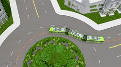 ▲“智轨”列车转弯半径与有轨电车、公交巴士对比