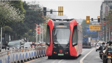 安全高效:采用了“虚拟轨迹跟随控制技术”,看似无轨,实则有“轨”。简单来说,就是通过在车上安装各种传感器识别路面虚拟轨道线路,