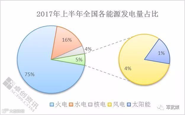 下图是最2017年上半年全国各能源发电量占比。