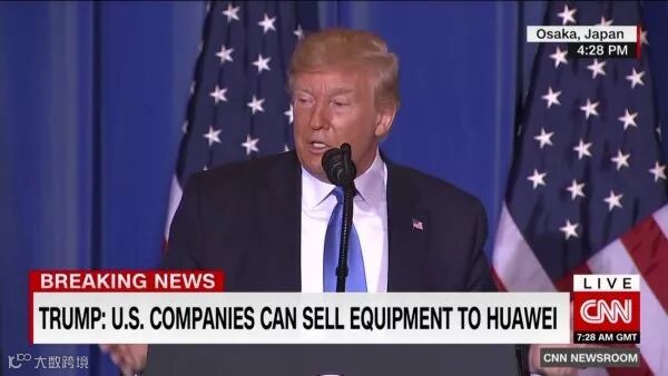 6月29日,在日本大阪出席G20峰会的特朗普举行记者会,会上他对外宣布:美国企业可以继续向华为出售零件。