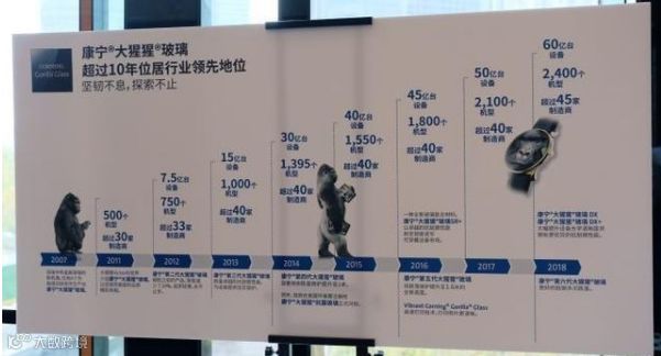 截止2018年,目前全球已经有超过60亿台设备、超过45个品牌都在使用大猩猩玻璃。