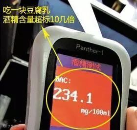 无独有偶,编辑在微博上搜索蛋黄派致“被酒驾”新闻时,发现,原来吃块豆腐乳酒精含量居然能达到234.1mg/ml,超过标准10多倍,达到了醉驾的标准。