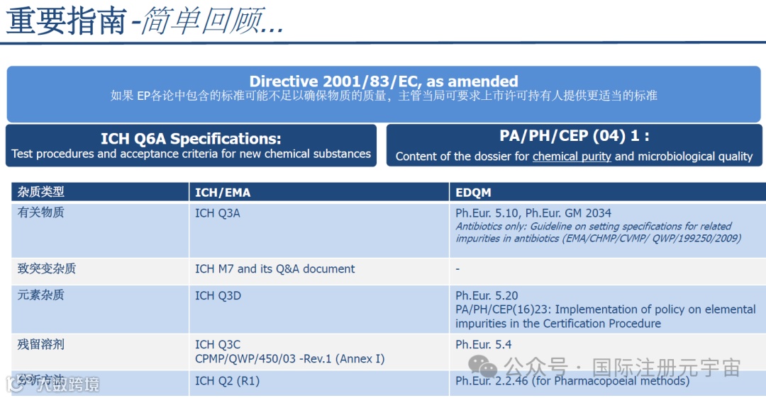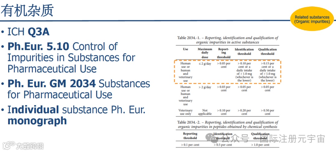 EDQM:杂质控制-有机杂质