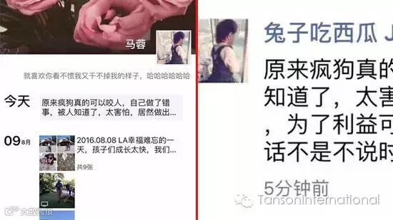 今日凌晨5时,网上又流出了一张疑似马蓉本人的微信朋友圈截图:“原来疯狗真的可以咬人,自己做了错事,被人知道了,太害怕,居然做出此等伤天害理之事,为了利益可以舍弃家人朋友孩子战友,有的话不是不说时候未到,夫妻一场,这又何必。”疑似对王宝强的声明作出反击。