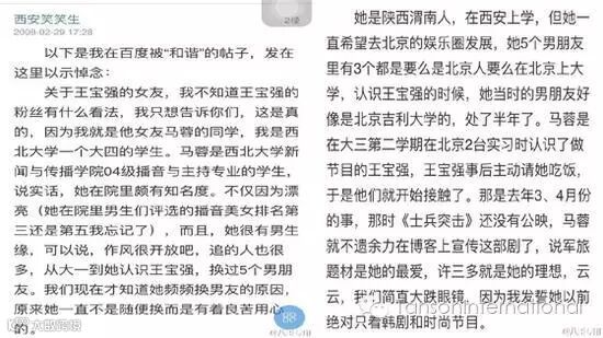 有网友爆出,王宝强曾在百子湾包养三个女大学生,连小区保安都知道,“我哥们跟他们一小区,亲眼看见过很多次了,仨全在一个小区不同楼。”“就允许他玩得开,媳妇受不了了跟别人好就不行了,太双标了。”