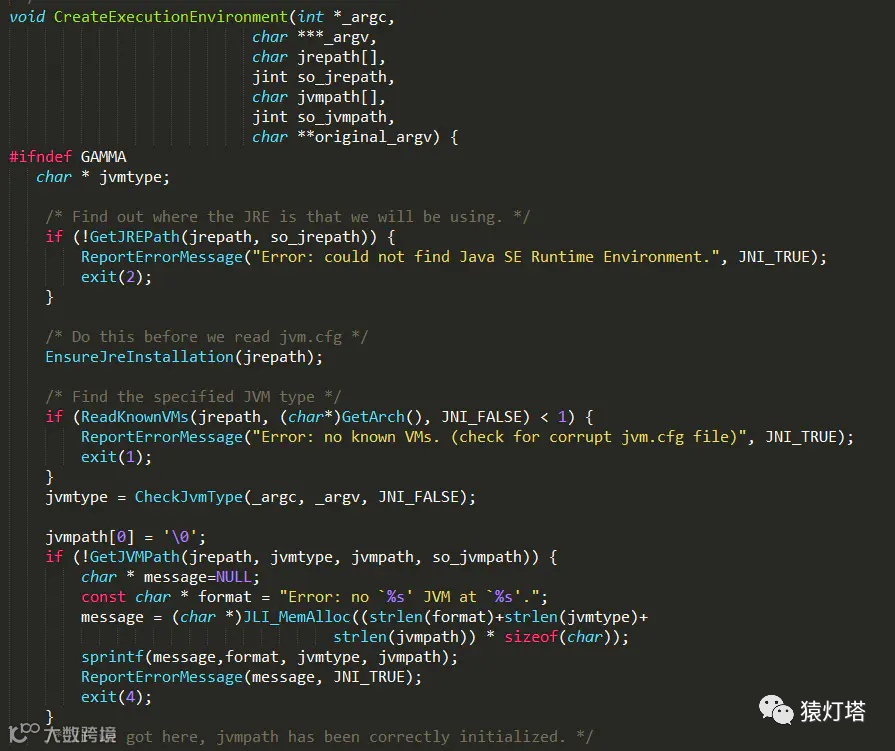 CreateExecutionEnvironment方法实现,根据当前JRE环境的路径和系统版本寻找jvm.cfg文件,windows实现如下: