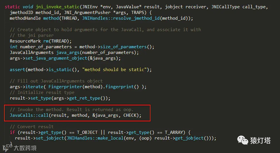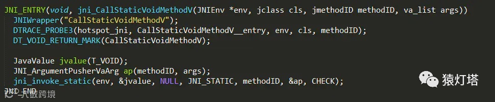 CallStaticVoidMethod方法最终调用JVM.dll中的jni_CallStaticVoidMethodV函数,实现如下