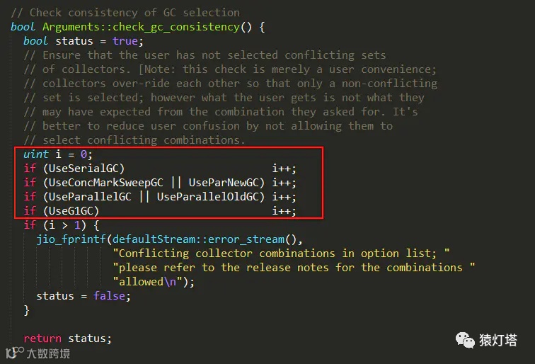 Arguments::check_gc_consistency方法负责验证虚拟机启动参数中配置GC的合理性,实现如下: