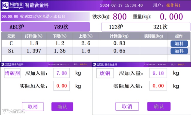 产品嵌入产前预防(首次辅料理论值计算:辅料理论添加量计算,实现一次加料合格率98%)、产中控制(自动采集光谱数据计算辅料加入量)、产后追溯(历史数据查询)等行业领先的业务理念,进行全流程熔炼工序辅料添加过程的管控。