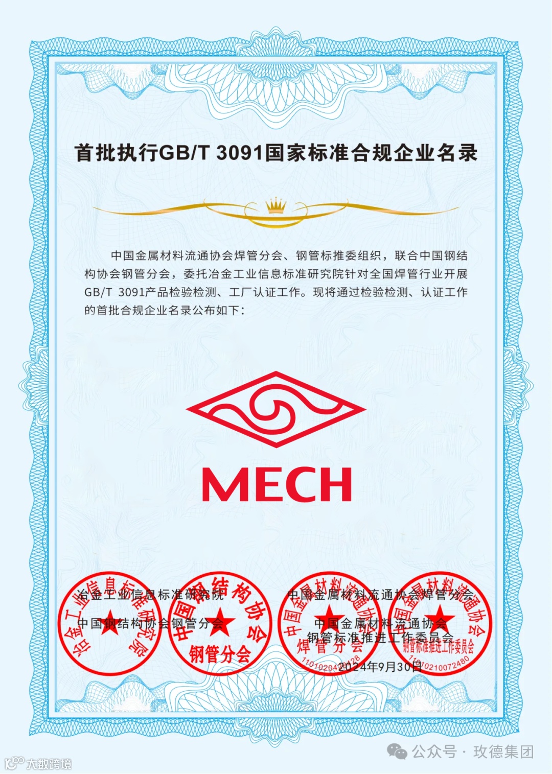 导读:玫德集团旗下迈科管业作为首批GB/T 3091-2015热镀锌焊管产品认证获证企业顺利通过监督评价