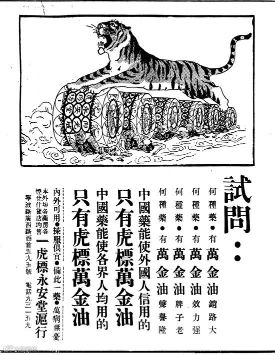 “外国人都赞美中国饼干(十分可靠)”、“中国药能使外国人信用的 只有虎标万金油”,虽然嘴上说着产品都是“中国制造”,但还是得要“外国人”担保的质量。
