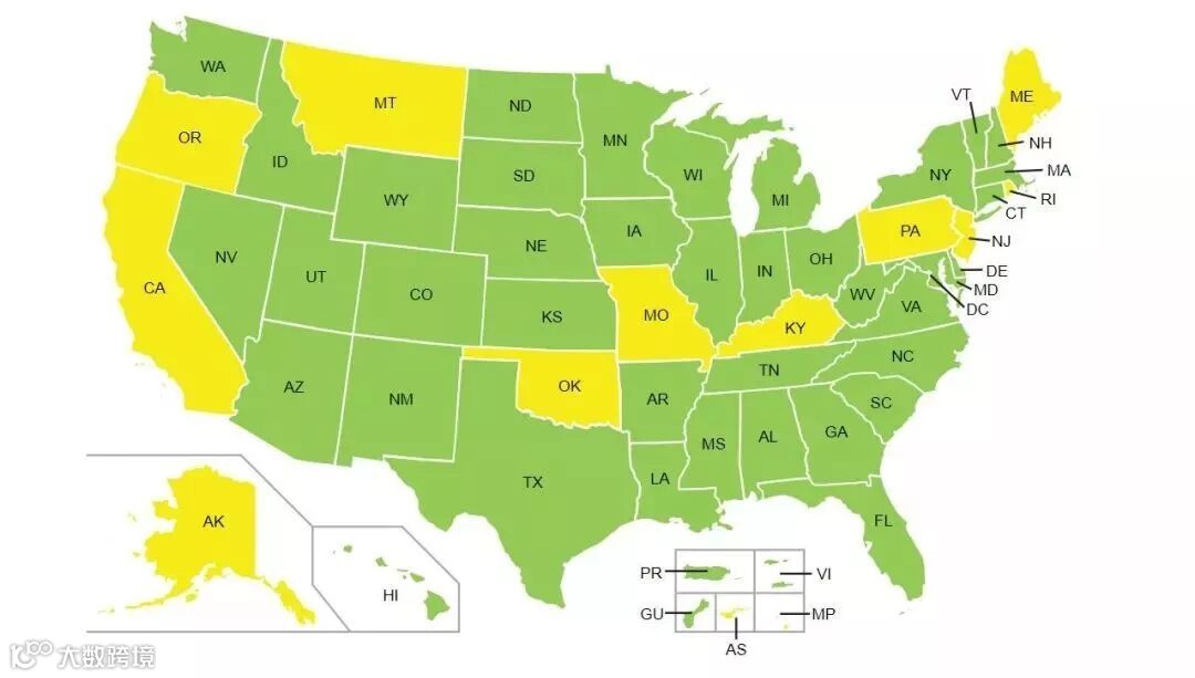 绿色为合格州,该州驾照已经符合 REAL ID 标准,居民可以拿着本州驾照登机,对出行不会造成任何影响。