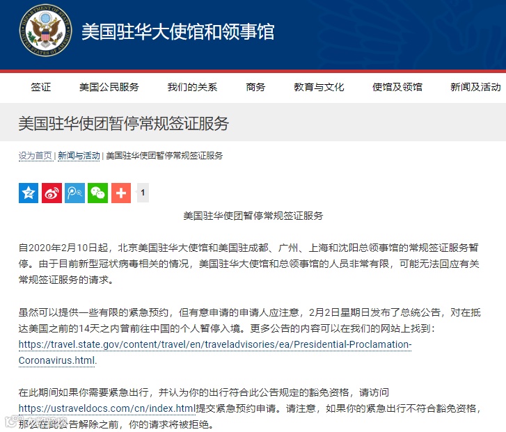 因为疫情的影响,在今年的2月3日,美国驻北京大使馆和美国驻成都,广州,上海和沈阳总领事馆暂停普通签证业务包括免面谈申请的办理。