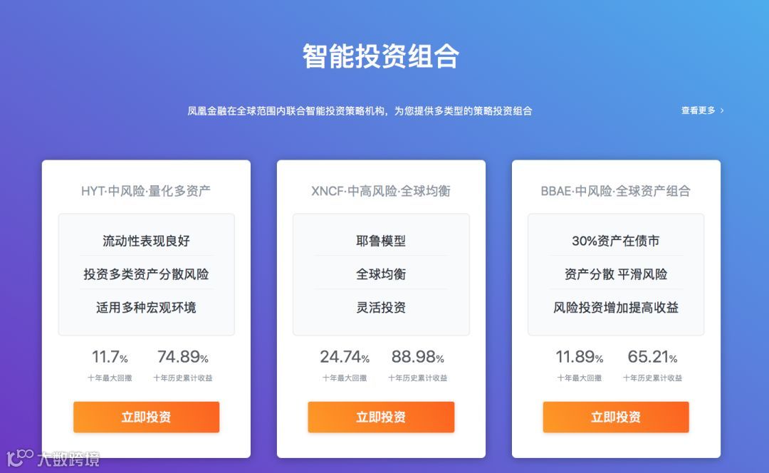 2018年8月,凤凰金融国际站在原有的美元投资产品基础上,正式推出智能投资组合,为海外华人用户提供多类型的策略投资组合,采用科技手段,把服务用户的边际成本降低,利用智能管理系统有效实现全球化资产配置。针对华人用户的需求,凤凰金融同时放出了出海和智能两个“大招”,开创业界先河。