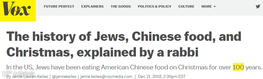 也许你还不知道,在美国,犹太人圣诞节吃中餐的传统已经有100多年的历史了。