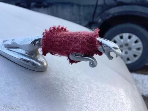 明尼苏达的居民为自己的捷豹汽车的车标穿上毛衣