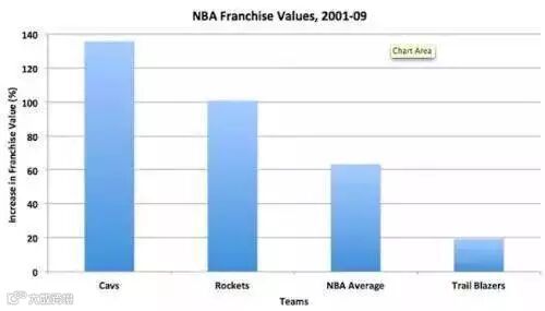 有媒体统计,在姚明为火箭效力期间,火箭球队价值上升了100%: