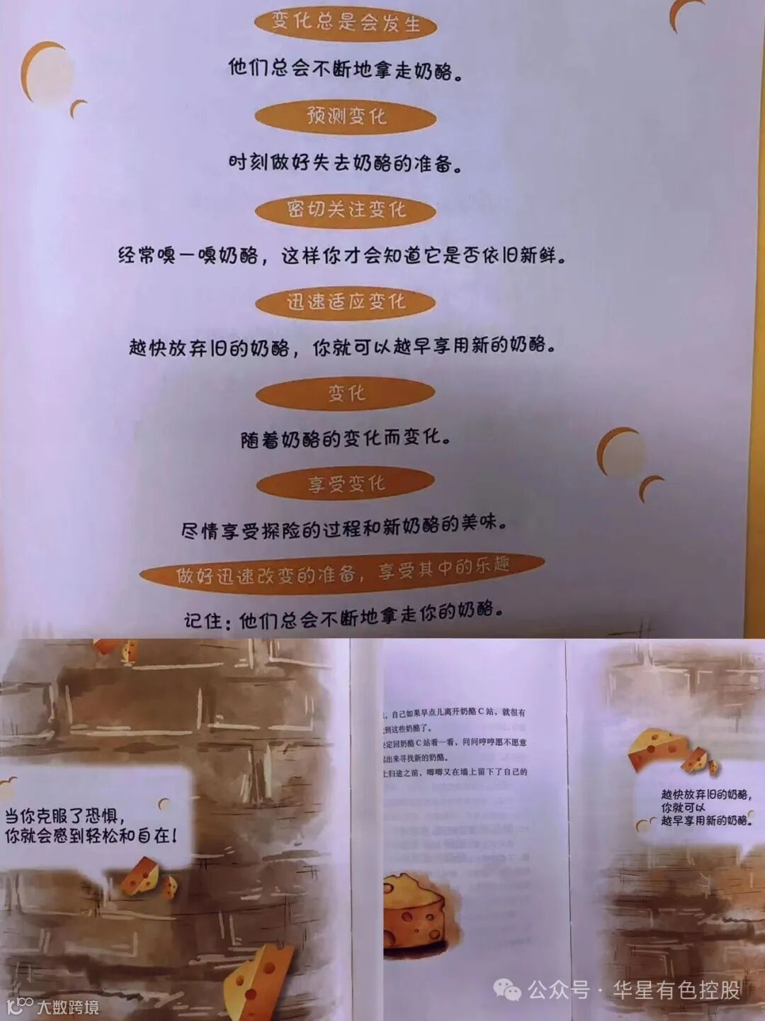 这本书通过两个小矮人和两只小老鼠简单而富有哲理的寻找奶酪故事,揭示了人们在面对变化时的不同态度和应对方式,生动地阐述了面对变化时的不同反应和策略。书中的“奶酪”象征着我们在生活和工作中追求的目标和成功,而迷宫则代表了我们所处的环境和挑战,以下为从个人角度结合到企业角度的不才感悟分享。