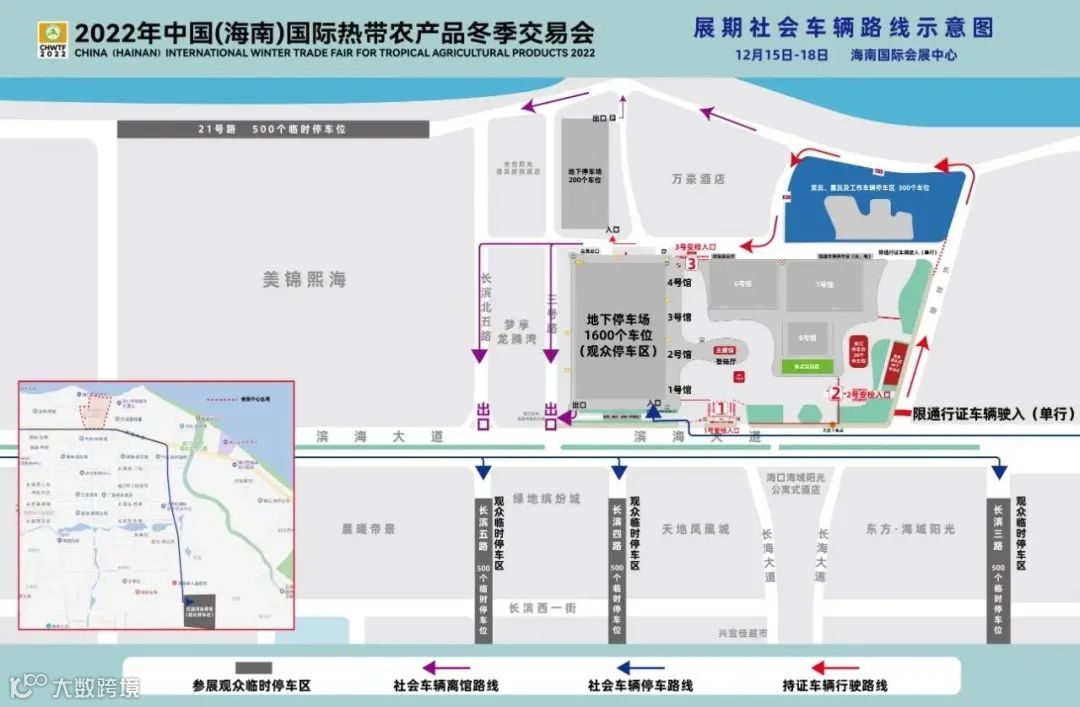 海口美兰国际机场—海南国际会展中心,距离约 41.5 公里,车程约 48 分钟,打车约 120 元; |
