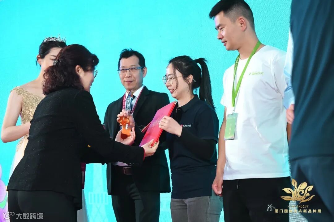 本届新花展共有来自国内外的70余家企业、科研单位携1000余个新优品种参展,其中国外参展商近30家,侧重展示了近年来国内外花卉产业在育种研发创新、新优品种培植、规模化生产示范、园艺生活化应用等领域的最新发展成果。为激发花卉品种培育创新能力、焕新花卉产业持续发展源动力,展会期间,组委会举办了“花卉新品种奖”评选活动,从参展的1000余个新优品种中选出26个品种分获金、银、铜奖,其中获得金奖的品种分别是丽格秋海棠-索莱雅、南非万寿菊-花之力、超级向日葵-光辉岁月、大丽花-超级贝拉、春石斛-仙野红香妃、麦杆菊-格兰菲娅。